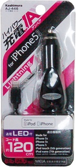 DC充電器 日記 2014.07.16 こんにちは。 東京支店 焼谷です。 本日ご紹介する商品はこちらです。 カシムラのDC充電器です!! Apple MFiライセンス取得 DCソケット電源から充電する、Lightningコネクター端子専用の充電器です! iPhone愛用者の方は是非、ご検討ください。 メーカー:カシムラ 型番:AJ-446 参考税抜価格:1,480 ※入替不可商品です