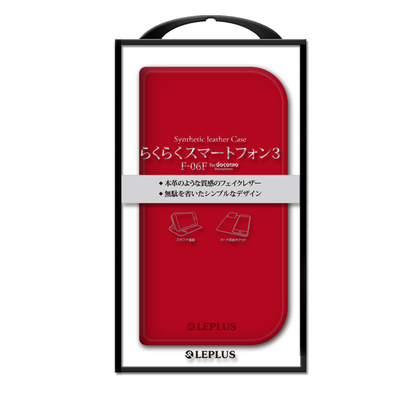 ■らくらくスマートフォン3 F-06F レザー(合皮)ケース レッド