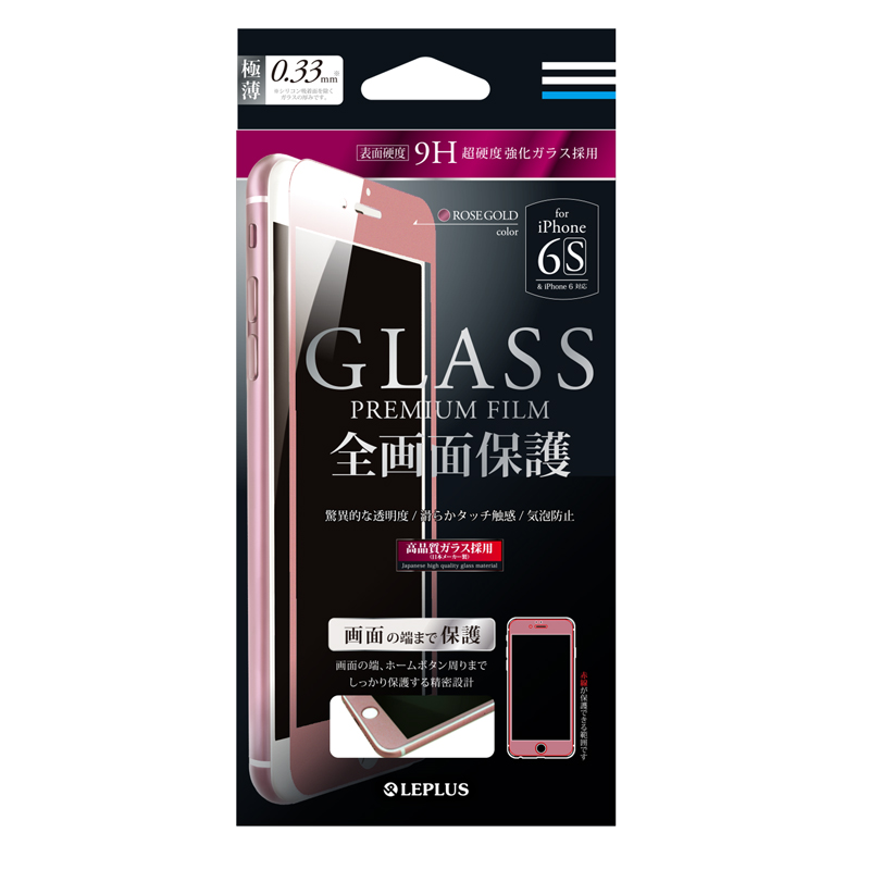 iPhoneの中で人気色のローズゴールドに合わせた全画面保護のガラスフィルムです。