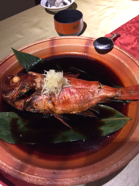 その旅館の夕飯ですが、伊豆では名物の金目鯛の煮付けとのこと・・・