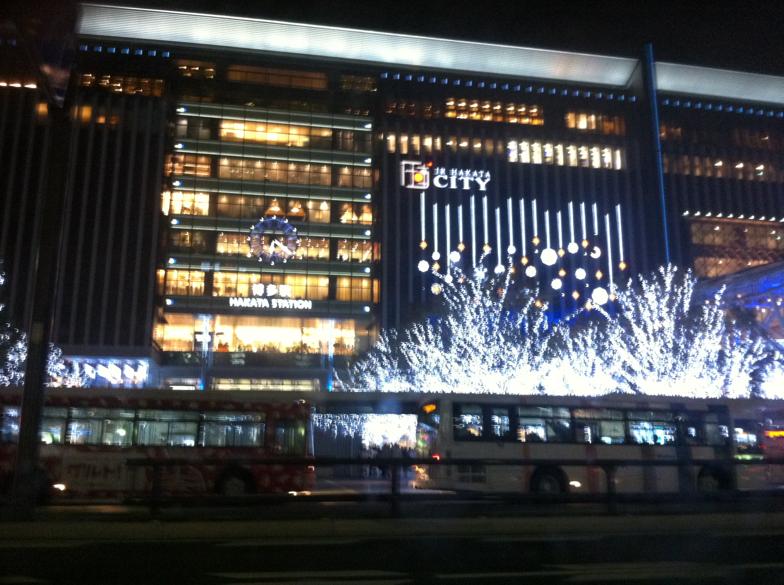 12月と感じたひと場面 日記 2011.12.03 こんにちは。気分はまだ10月のような福岡本社の小嶋です。 12月に入りましたが、そこまで寒くも無く、一向に冬の季節が感じられないのは 私だけでしょうか? 私は各季節の「匂い」というものが感じ取れるのですが、 (↑共感できる方いますか??) まだ冬の匂いは感じ取れていません。 そんな中、最近夜暗い時間に博多駅前を通ったのですが、 ご覧の通り、イルミネーションが凄く綺麗だったんですよ。 視覚的に感じ取れましたね、冬。 ちなみに冬の匂いはスーッと透き通った冷たい空気、というような感覚です。