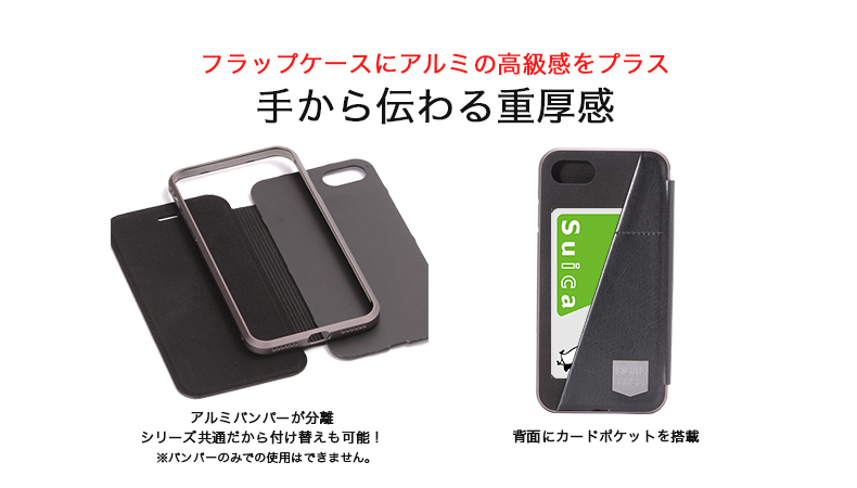 品 名:iPhone7 アルミバンパー+PUレザーフラップケース「DUAL FACE Flap」ブラウン