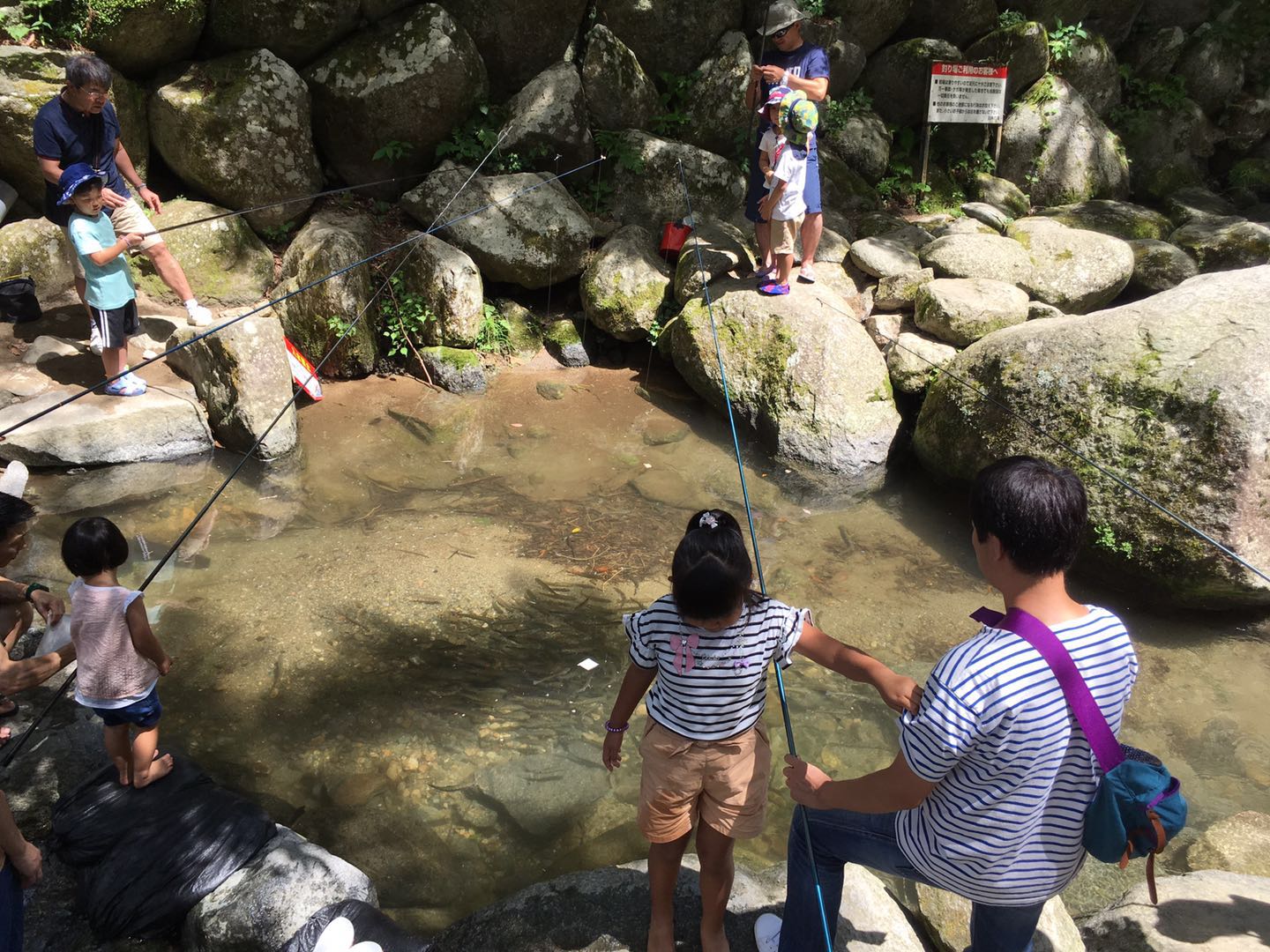 ヤマメの塩焼を500円でいただきました。少し小ぶりでしたがふわっとして美味しかったです。ヤマメ釣りも¥2000で、3匹保証だそうです。釣れなくても塩焼き三匹は追加料金300円でもらえます。どんどん釣ると追加料金が発生します。ただしリリースは禁止です。楽しそうに皆さん釣り上げていました。終わりの暑い時期に、涼をこちらで過ごすのもいいと思います。