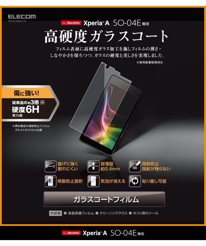 【 ELECOM / Xperia A/SO-04E/保護フィルム/ガラスコート 】